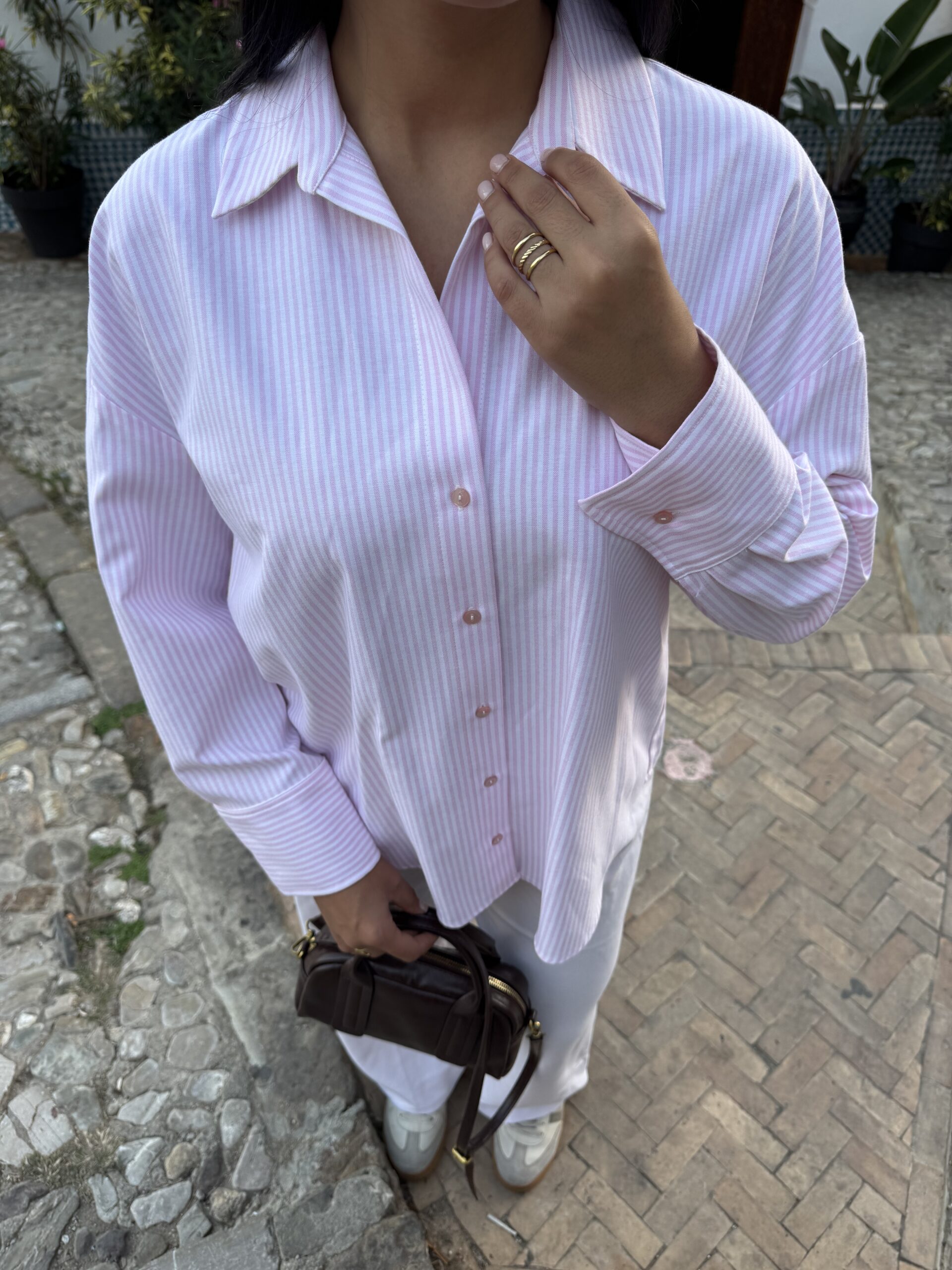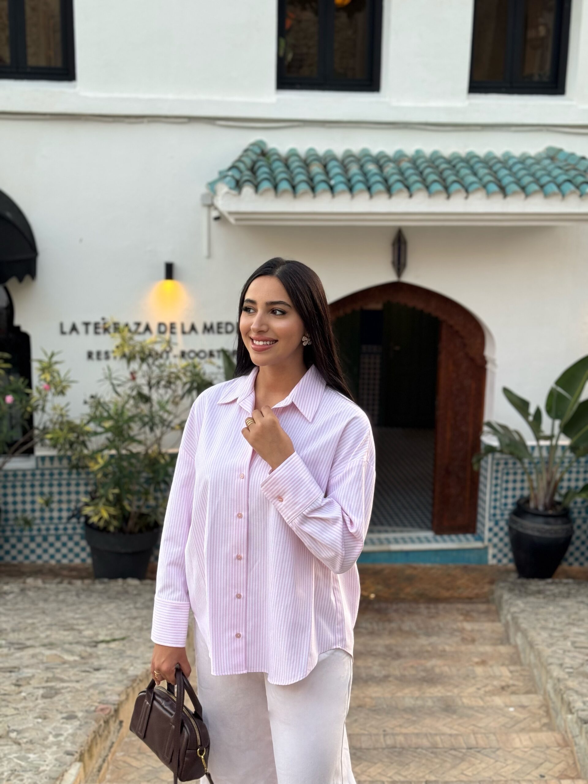 Apportez une touche de douceur et de fraîcheur à votre garde-robe avec notre chemise « Brume Rose ». Ce modèle intemporel à fines rayures verticales roses et blanches offre une coupe décontractée et fluide, parfaite pour un look de journée lumineux. Ses poignets structurés et son col classique ajoutent une note de sophistication à cette pièce essentielle، facile à marier avec un pantalon blanc pour une élégance sans effort.